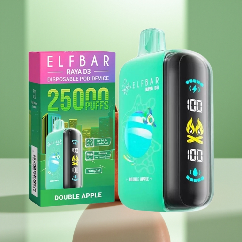 ELF BAR RAYA D3 25000 Pufuri Vape Disposable Măr Dublu, 23ml, 5% Nicotină, 850mAh