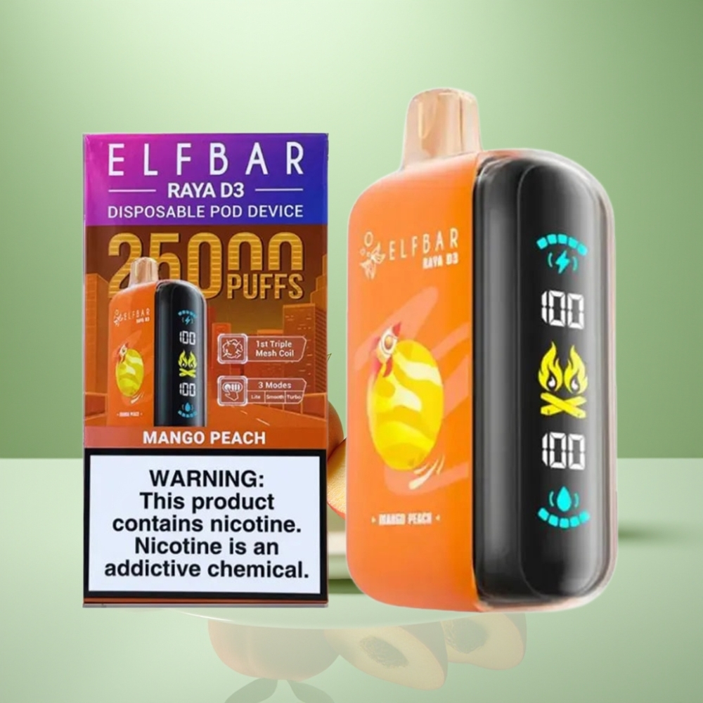 ELF BAR RAYA D3 25000 Pufuri Vape Dispozabil Mango-Piersică, 23ml, 5% Nicotină, 850mAh, Tip-C