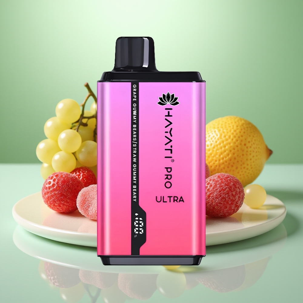 Hayati Pro Ultra 15000 Pufuri Vape Disposable – 850mAh, 24ml, 2% Nicotină, Aromă Gummy Bear Struguri & Căpșuni
