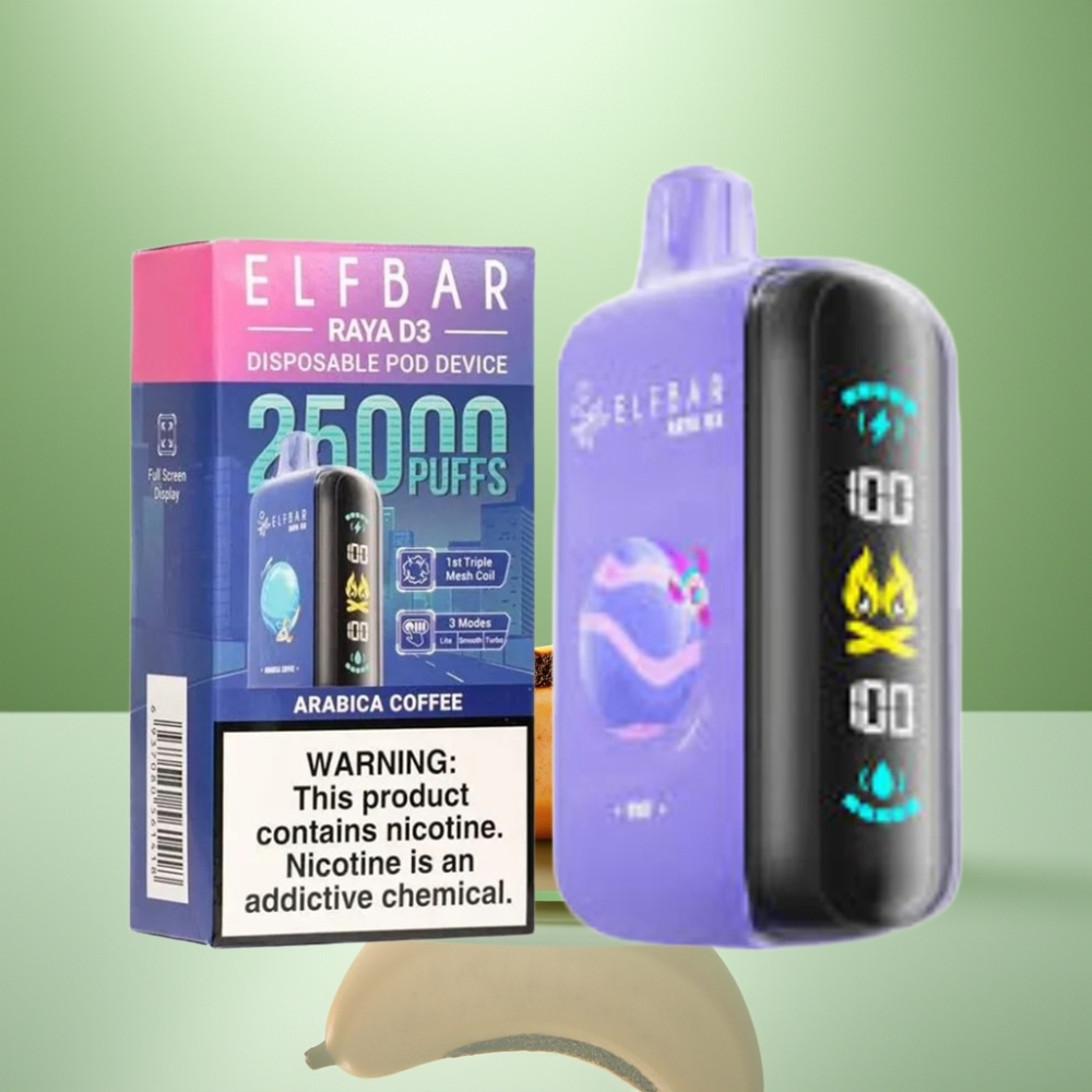 ELF BAR RAYA D3 25000 Puffs Disposable Vape Cafea Arabica, 23ml, 5% Nicotină, 850mAh, Tip-C